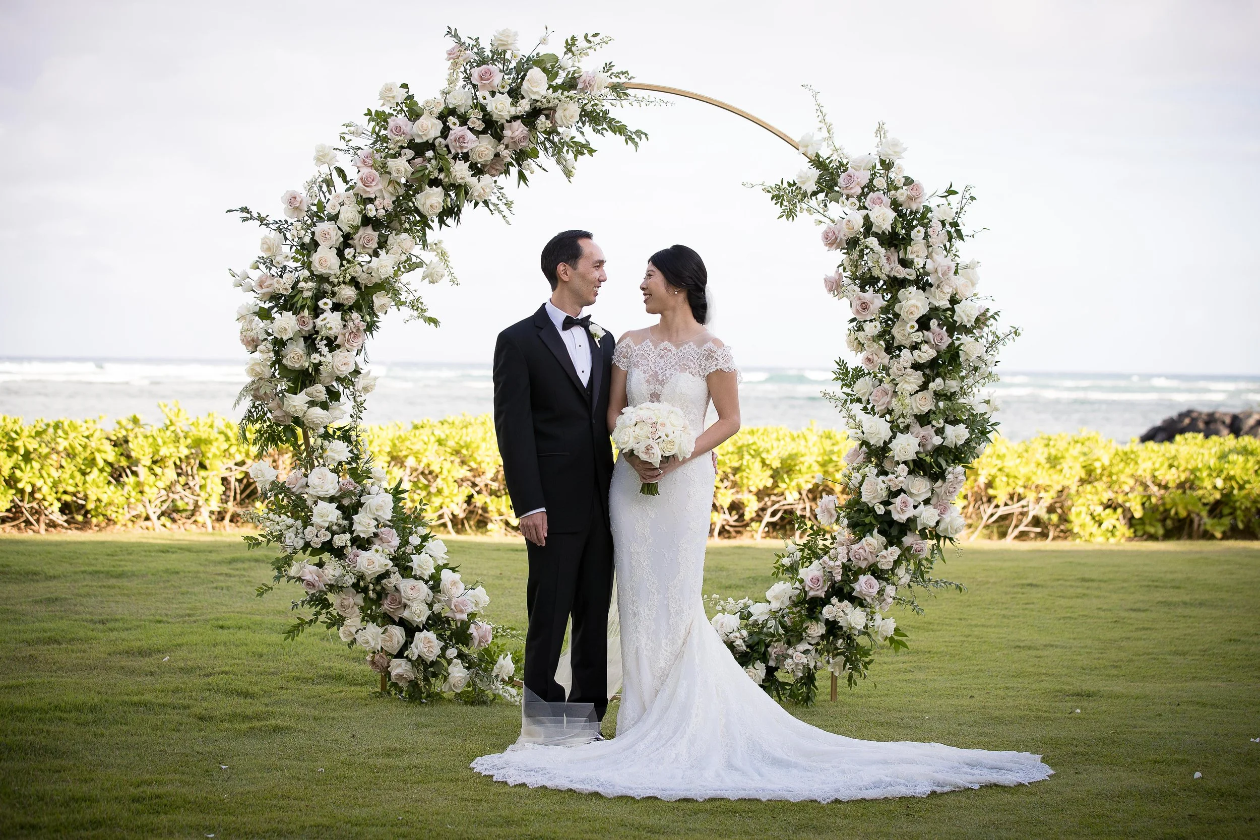Floral accents in ceremony arches, table runners, or sweetheart tables