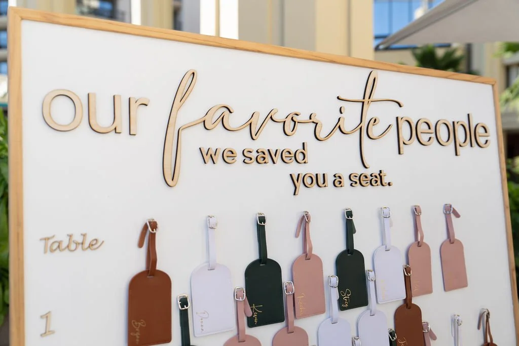 Replace traditional table numbers with names that mean something to your relationship. This could be places significant to your story — cities you’ve visited, where you got engaged, or favorite restaurants!