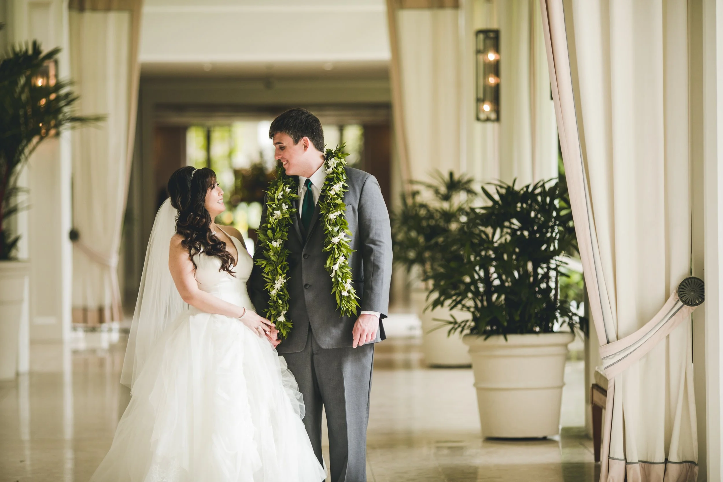 The ceremony was held in the garden courtyard, where Alyssa and Joshua exchanged leis and heartfelt vows. The moment was truly touching and made even more special when they sealed their promise with a kiss as the officiant blew a conch shell, honoring the Hawaiian tradition of the Pu!